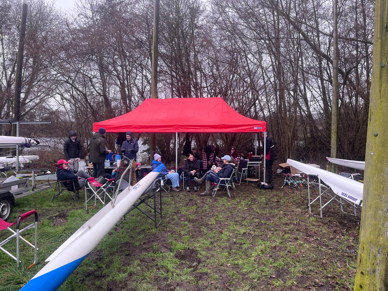 The new Rob Roy gazebo proved its worth immediately, keeping athletes and kit dry while the river crept up around the landing stage.